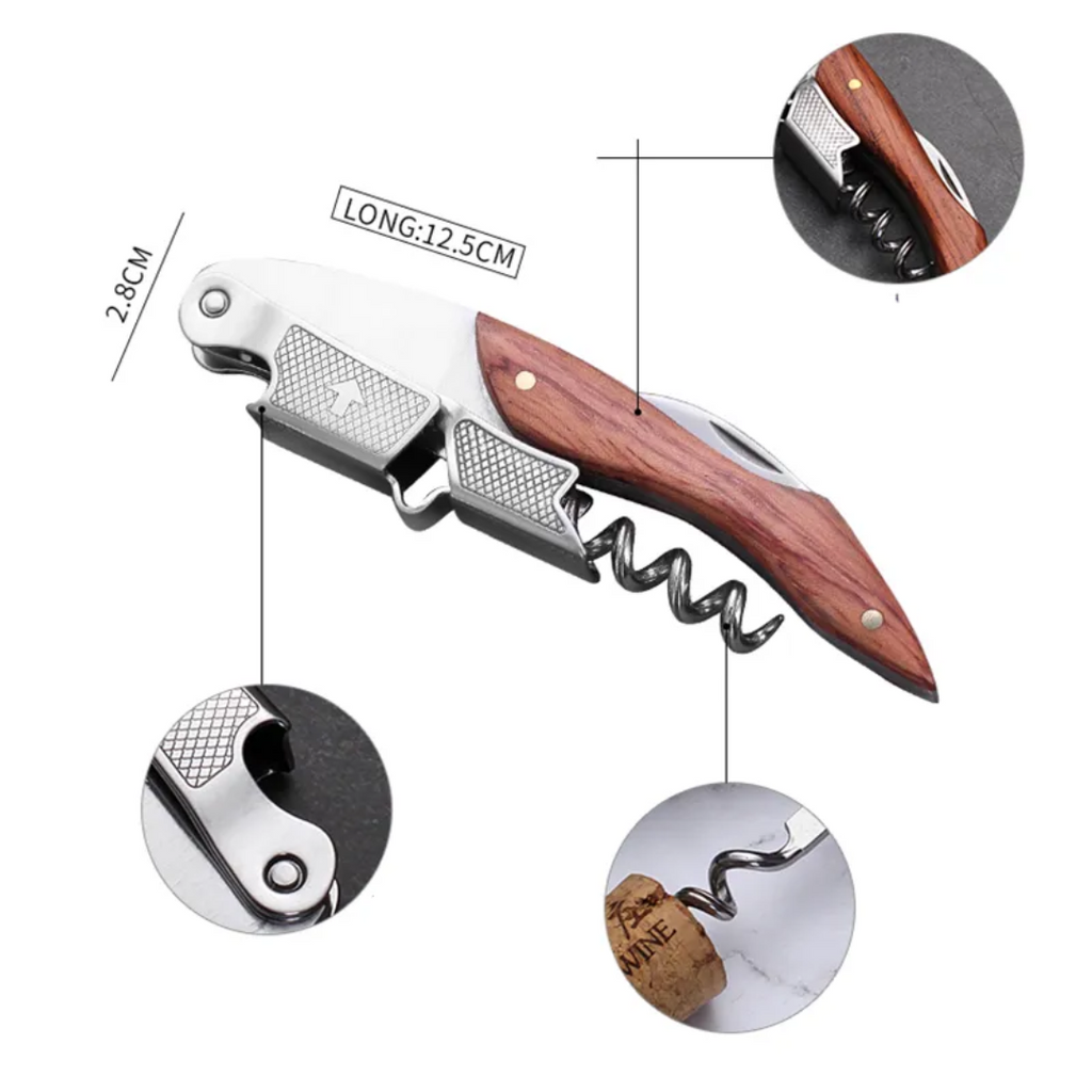 Acompanha: 1x Saca-Rolhas Profissional com Cabo em Madeira