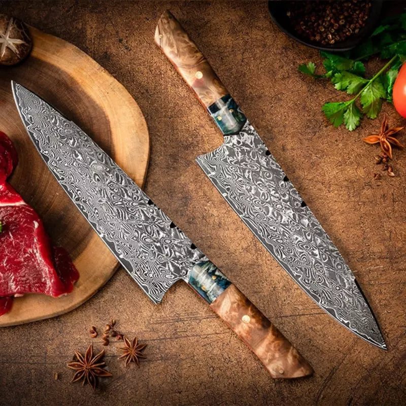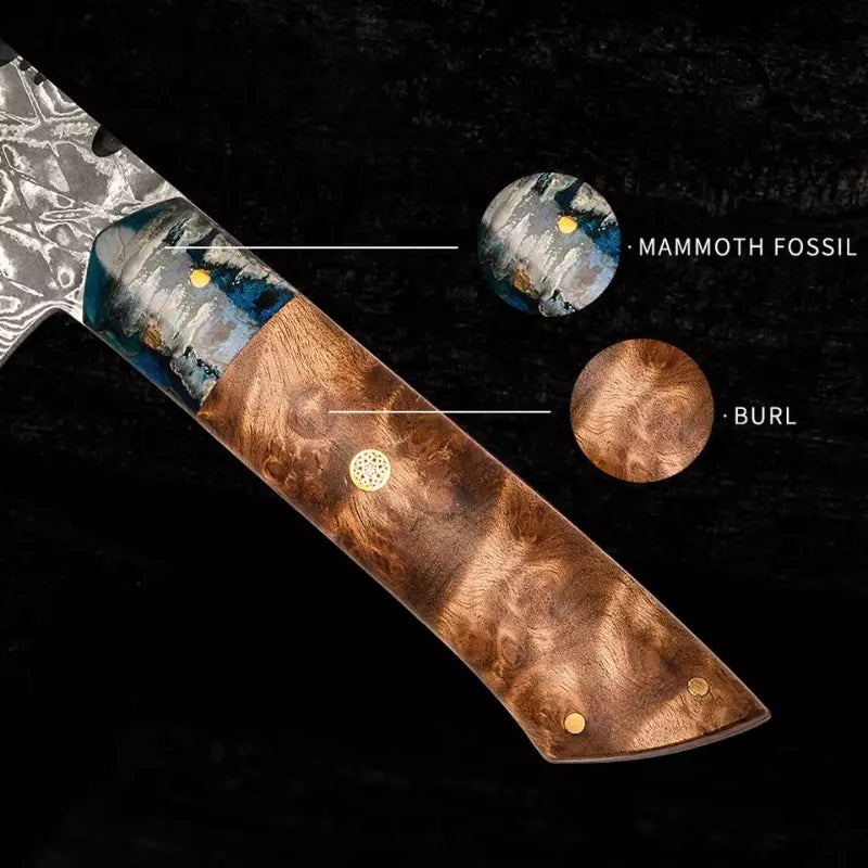 Sua lâmina é forjada à mão na mais alta qualidade da cutelaria. Seu material confere um alto grau de força, tração, dureza e resistência ao desgaste. Possui um poder de corte muito superior, podendo manter seu fio de corte afiado por até 5x mais tempo que outras facas.