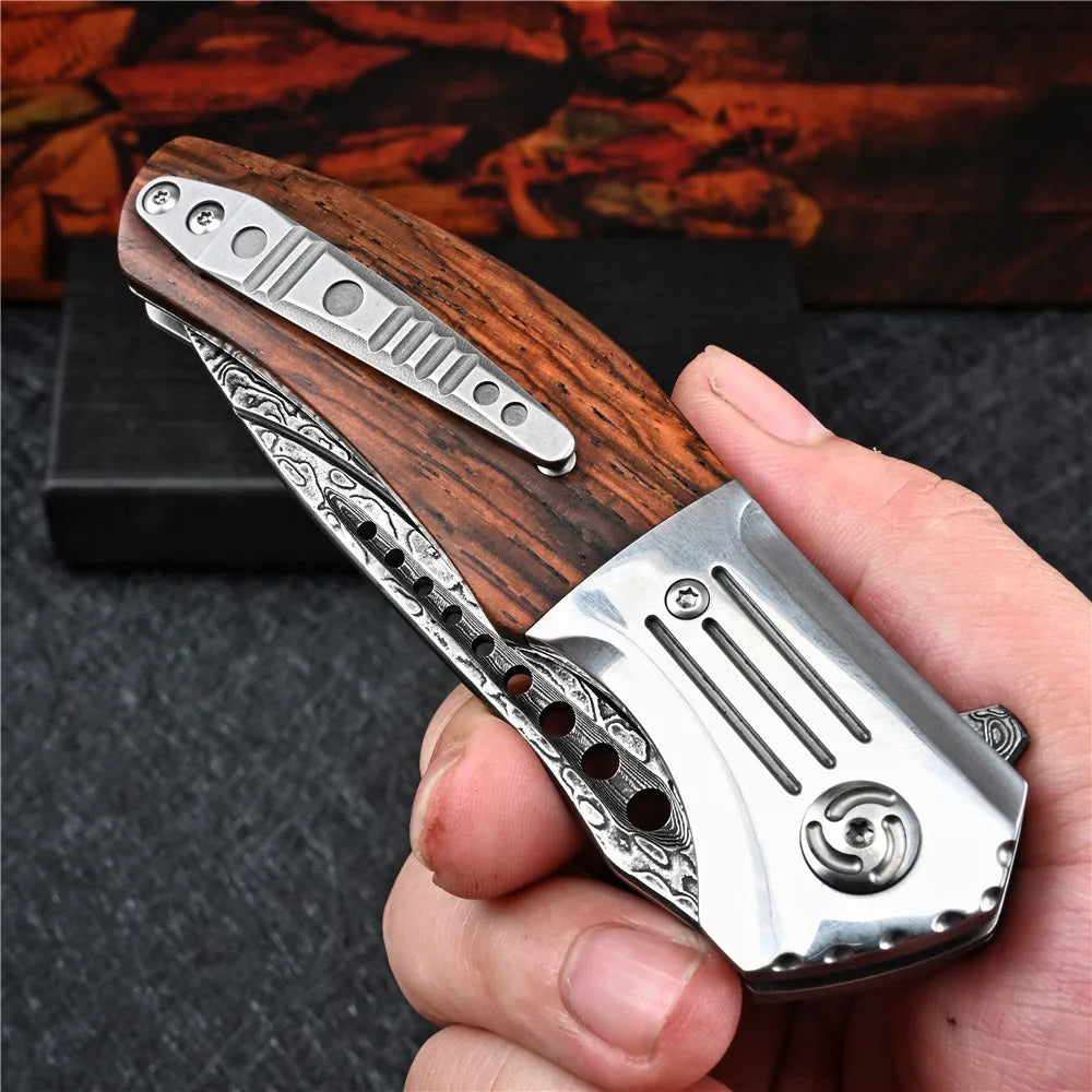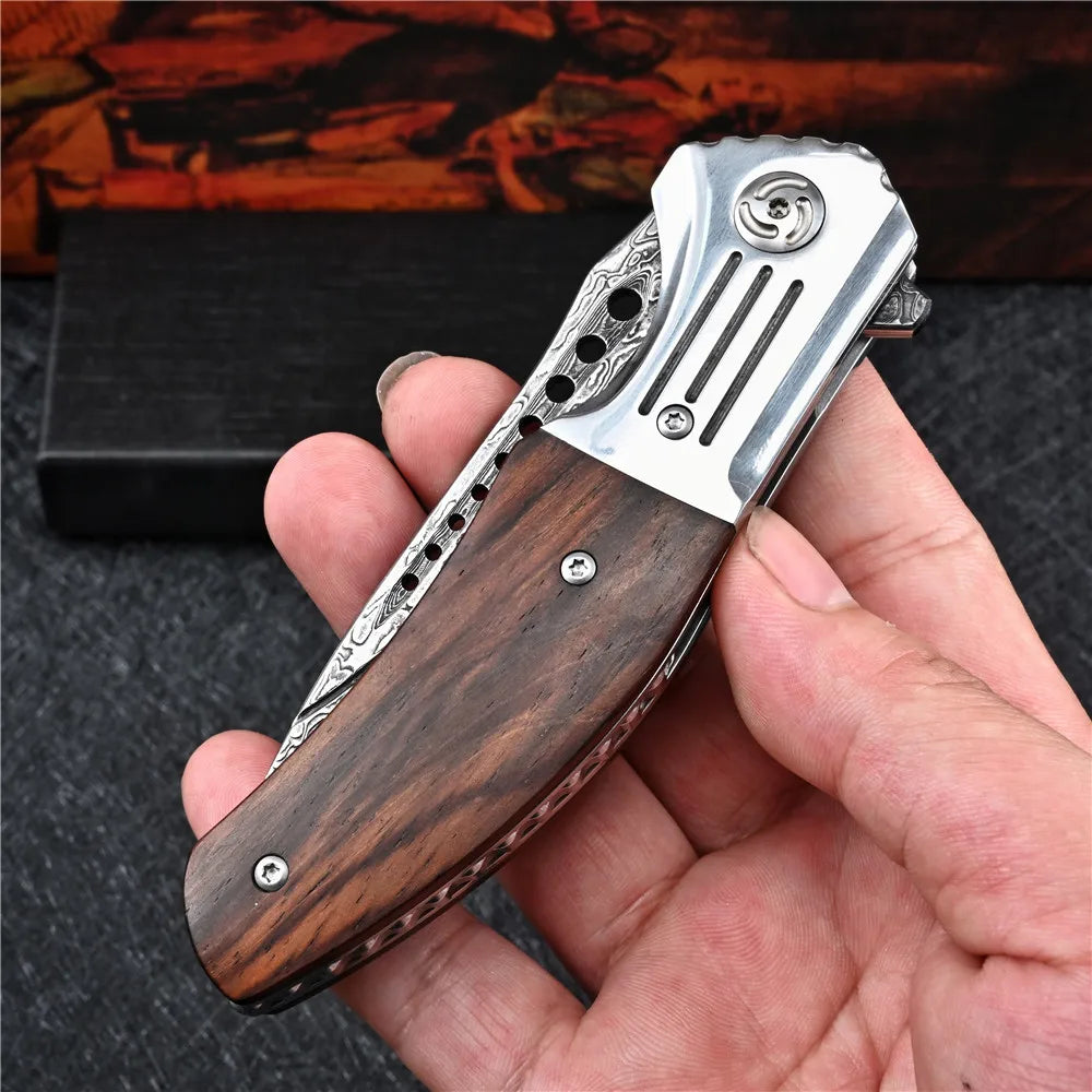 Comprimento total: 206mm Comprimento da lâmina: 87mm Comprimento do punho: 119mm Espessura da lâmina: 3.0mm Largura da lâmina: 30mm Peso neto: 176g Peso bruto: 215.7g Material da lâmina: Aço Damasco VG10 Material do punho: Madeira Nobre Dureza: 60-61 HRC