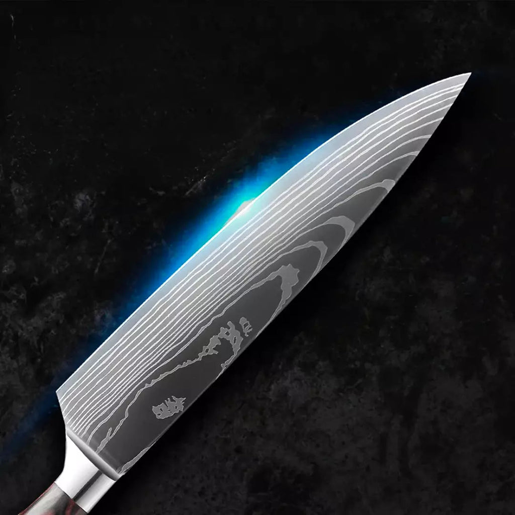 Sua lâmina é forjada à mão na mais alta qualidade da cutelaria. Seu material confere um alto grau de força, tração, dureza e resistência ao desgaste. Possui um poder de corte muito superior, podendo manter seu fio de corte afiado por até 5x mais tempo que outras facas.