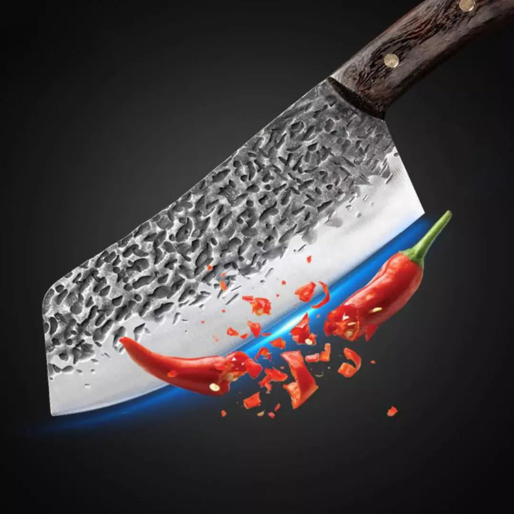 Sua lâmina é forjada à mão na mais alta qualidade da cutelaria. Seu material confere um alto grau de força, tração, dureza e resistência ao desgaste. Possui um poder de corte muito superior, podendo manter seu fio de corte afiado por até 5x mais tempo que outras facas.