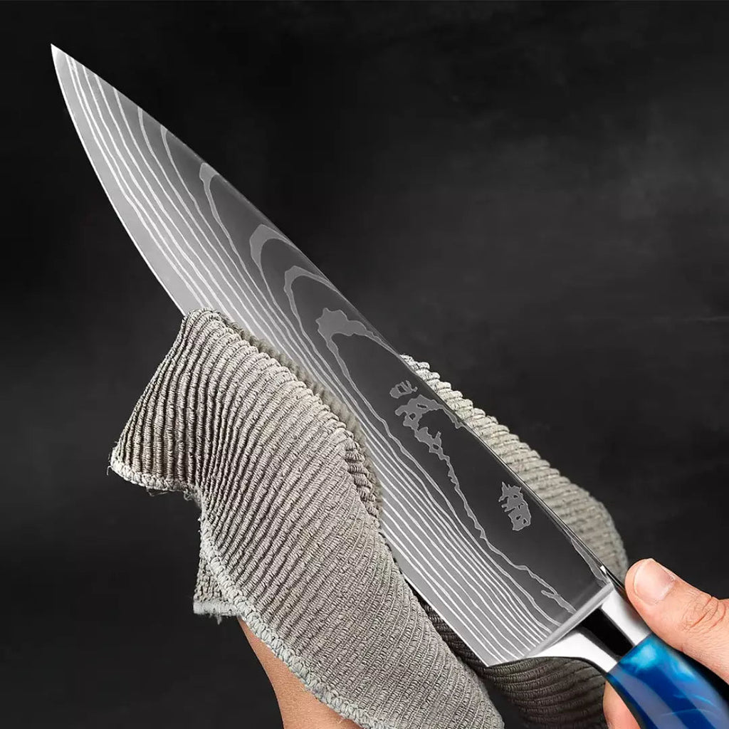 Sua lâmina é forjada à mão na mais alta qualidade da cutelaria. Seu material confere um alto grau de força, tração, dureza e resistência ao desgaste. Possui um poder de corte muito superior, podendo manter seu fio de corte afiado por até 5x mais tempo que outras facas.